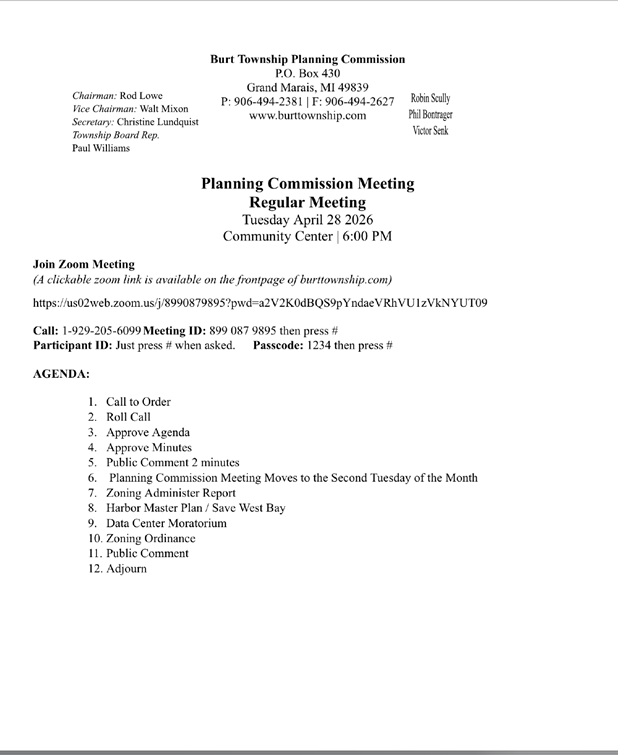 https://burttownshipacmi.gov/wp-content/uploads/2026/03/Public-Notice.pdf Budget packet from Meeting held on March 26, 2026. View here.
